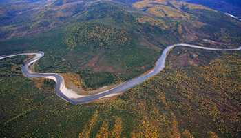 Broadly speaking, the majority of the landscape of Western Siberia is very flat, with large winding rivers that flow thousands of kilometers to Artic seas. You can travel for hours without seeing a hill. Large swamps occupy much of the plain area with the world's largest swamp, Vasyuganskoye, on the left bank of the Ob' River. The southern part of Western Siberia has hilly but fairly good agricultural land used for farming with most of the region’s population (80%) living here. This is also where the famous Trans-Siberian railroad connects major cities of the region with the rest of Russia. The very tip of the southern part of Western Siberia, where Russian, Mongolian and Kazakhstan borders meet, is highlighted by the golden Altai Mountains, which provide the source of its greatest rivers - the Ob and the Irtysh. The Altai Mountains represent the most complete sequence of altitudinal vegetation zones in central Siberia: steppe, forest-steppe, mixed forest, sub-alpine and alpine vegetation.