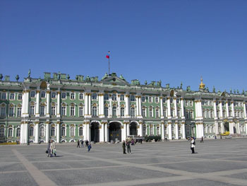 Our monument is the most famous building in St. Petersburg, the Winter Palace, with over a thousand rooms. It is located in the heart of the city, with Palace Square on one side and the Neva River on the other. It's called ‘Winter Palace’ because it served as the Czar's winter residence. Its world fame comes from it accommodating the Hermitage, one of the world's leading art museums. The current building of the Winter Palace was built in 1754-1762 by Italian architect Bartolomeo Rastrelli. It was the fifth to be built on the site, the first palace having been erected by Peter the Great in 1711. The style of the Winter Palace is Baroque, and to many Americans it seems excessively ornate. It is a musical building however, the rhythm being determined by the uneven distribution of the columns. The facades are lavishly decorated with ornamentation and sculptures. The interiors were repeatedly remodeled. The Winter Palace was the residence of the Czars, on and off, from the 1760s to 1917. It also held the Hermitage, a museum founded by Catherine the Great in 1764, when she bought a collection of paintings in Berlin. The Hermitage was rooted in the Age of the Enlightenment, when Catherine the Great corresponded with people like Voltaire and surrounded herself with progressive advisers. Today, the treasures of the Winter Palace have been expanded to 50 halls of French art dating back to the 18th-19th centuries, 37 halls of Italian art, numerous halls of the Dutch, Flemish, Spanish, German and other European schools, featuring such names as Michelangelo, Raphael, Giorgione, Titian, and Veronese. The Hermitage leaves the excellent Pushkin Fine Arts Museum far behind in terms of the sheer amount and quality of the art on display. The Winter Palace was also used for occasions of state and held the official regalia of the Empire. In 1826, the War Gallery of 1812 was opened in the palace, featuring portraits of the Russian generals who fought in the campaign. In 1837, a terrible fire swept through the Winter Palace, but by 1849 restoration was completed. The Winter Palace suffered a different kind of disaster in 1880. Stepan Khalturin, a member of the People's Will secret society, got a job as a carpenter in the Winter Palace and managed to smuggle dynamite into the basement. He lit the fuse before an official dinner was scheduled to begin with Alexander II. Dinner was delayed, and the Czar escaped unhurt, but the palace was damaged. Alexander II would die at the hands of the terrorists a year later, blown to bits by bombs. After the death of Alexander II, Alexander III transferred his residence to Gatchina. With the ascent to power of the last Czar Nicholas II, the royal family returned to the Winter Palace. When World War I started, the palace housed a hospital. In March 1917, revolutionary troops occupied the palace and removed the two-headed eagles. In July, the Provisional Government moved in. Premier Kerensky lived in the Czar's quarters here. When the Bolsheviks pulled off their coup, the Winter Palace was taken by storm. Although there was little bloodshed in that initial coup, the palace suffered significantly. The Soviets set up many different facilities here, including a movie theater and a revolution museum. Although the Winter Palace was officially called the Palace of the Arts, the name never caught on, and the newly opened Hermitage Museum kept the old name. During the siege of Leningrad, as St Petersburg was known in Soviet times, the palace was severely damaged by artillery shells and aircraft bombs. Extensive restoration work was carried out in the postwar period. The palace is maintained in relatively good condition, and ft was the focus of the recent Pushkin celebrations in St. Petersburg. ■ There is precious little we know about the architect who designed the Winter Palace and many other outstanding monuments in St. Patersburg and its suburbs. Bartolomeo Rastrelli (1700-1771) came to Russia with his father, who was a sculptor invited to Russia by Peter the Great, in 1716. Bartolomeo Rastrelli Jr. apparently went back to Italy to study between 1725 and 1730. In 1730 -1763, he was court architect in Russia and an honorary member of the Academy of the Arts. Rastrelli was the country's leading Baroque architect. He interpreted the traditions of European Baroque under the influence of the Russian artistic tradition. His monuments display tremendous scope and use Russian architectural elements such as belfries and domes. His most outstanding masterpieces are, apart from the Winter Palace, the Great Palace in Peterhof, the Catherine Palace in Tsarskoye Selo, and, in the city, the Vorontsov Palace, the Stroganov Palace and the Stegelmann House. The square in front of the Smolny convent, where he built the cathedral, was named after him Rastrelli Square. He apparently died in St. Petersburg.