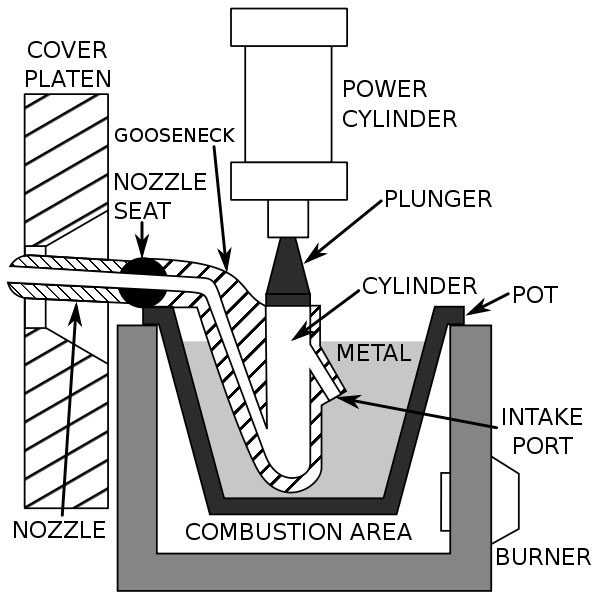 retracted, which allows the molten metal to fill the "gooseneck". The