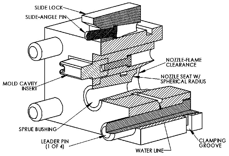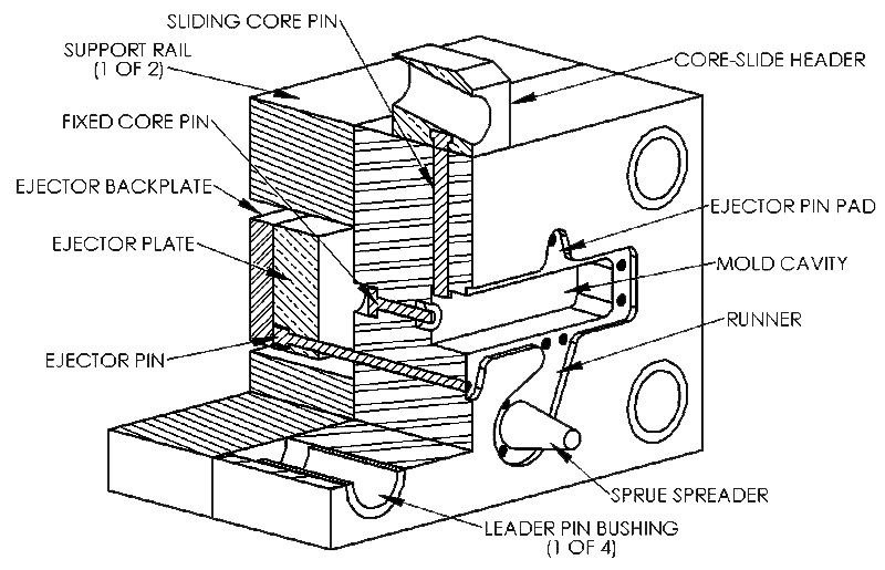 the casting is not damaged. The ejector pin plate also retracts the pins